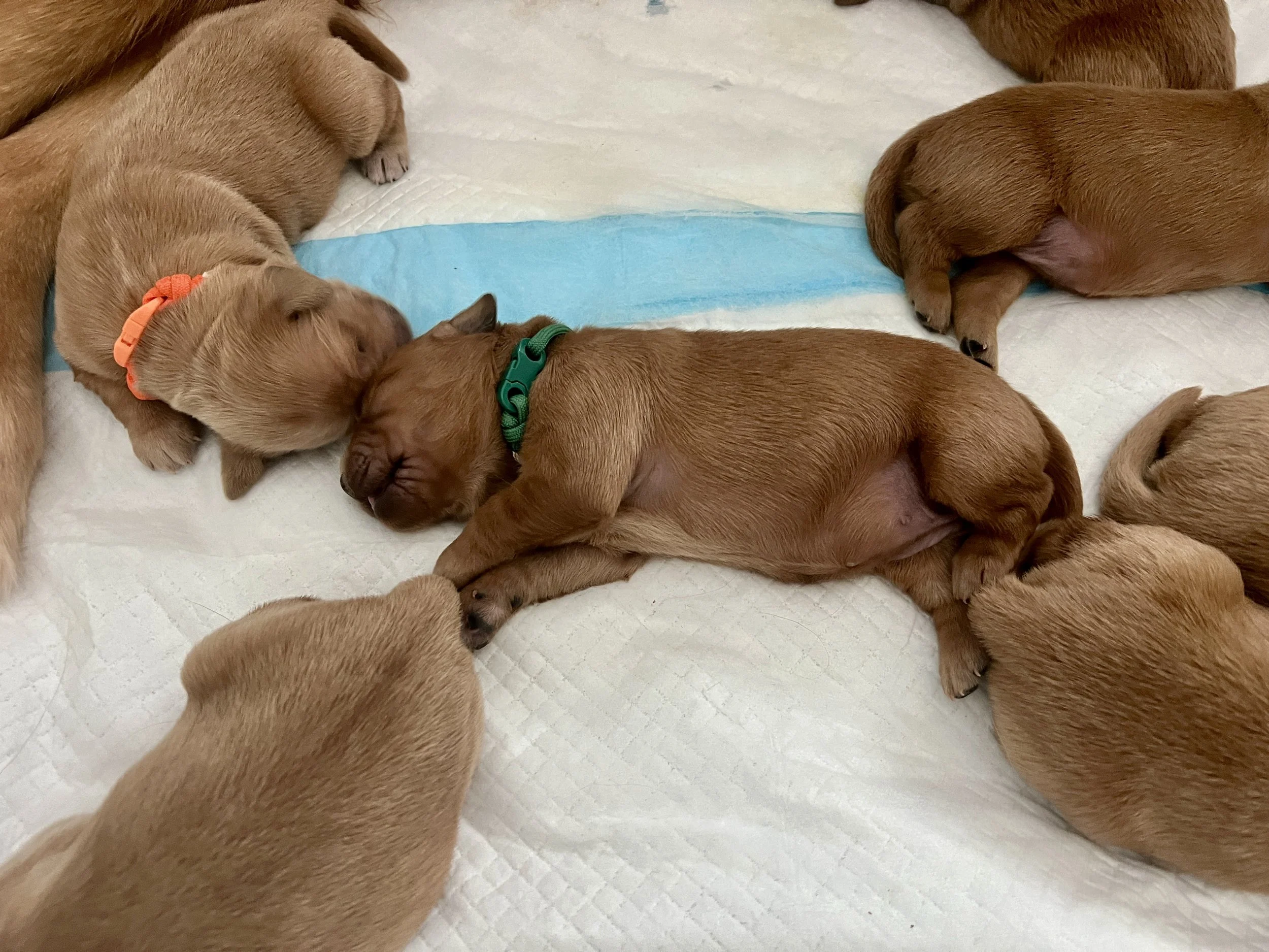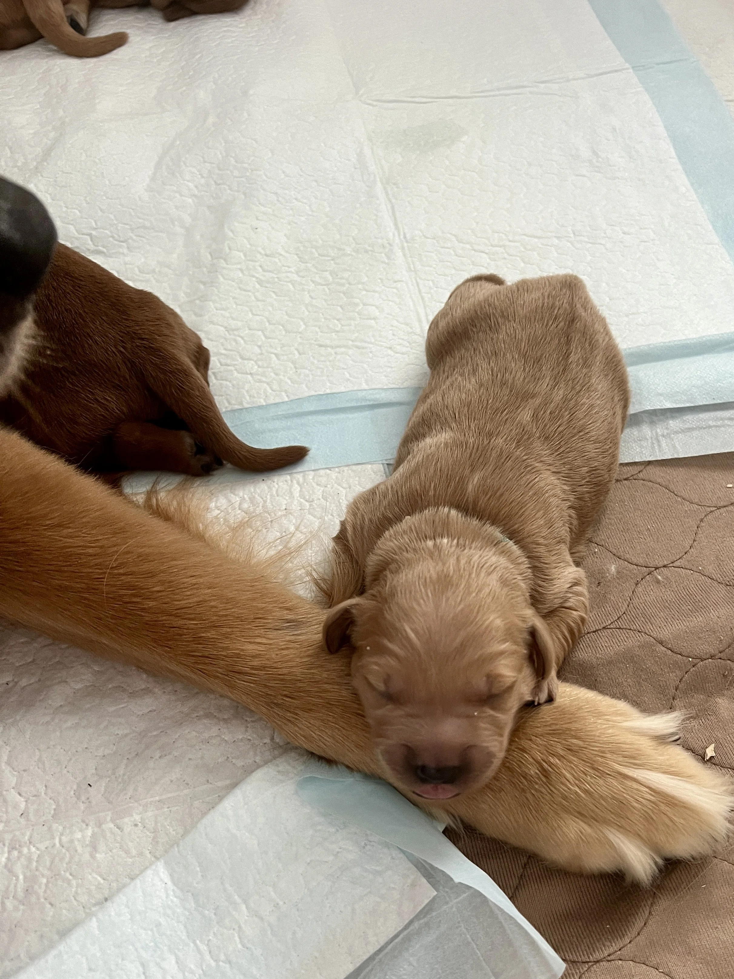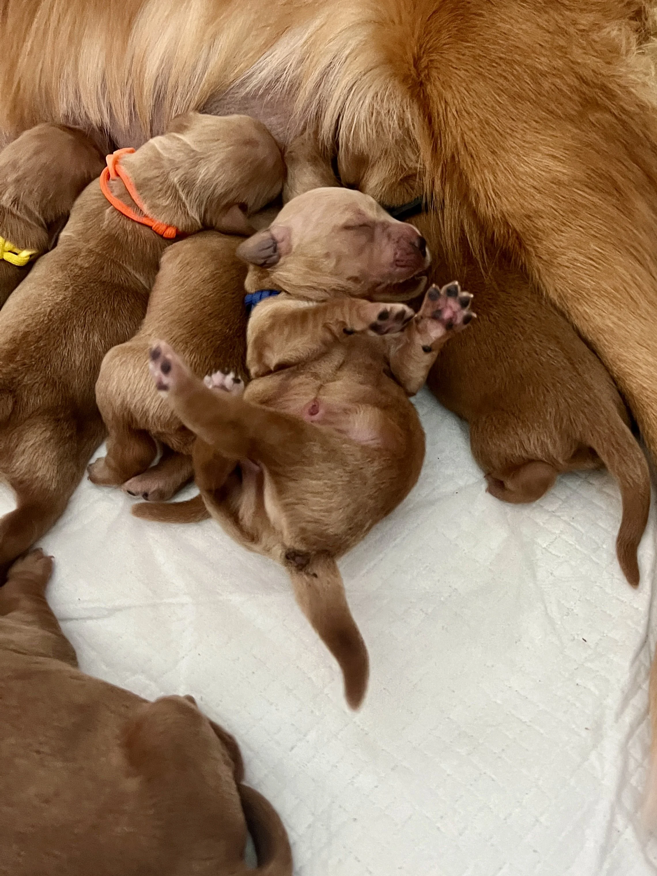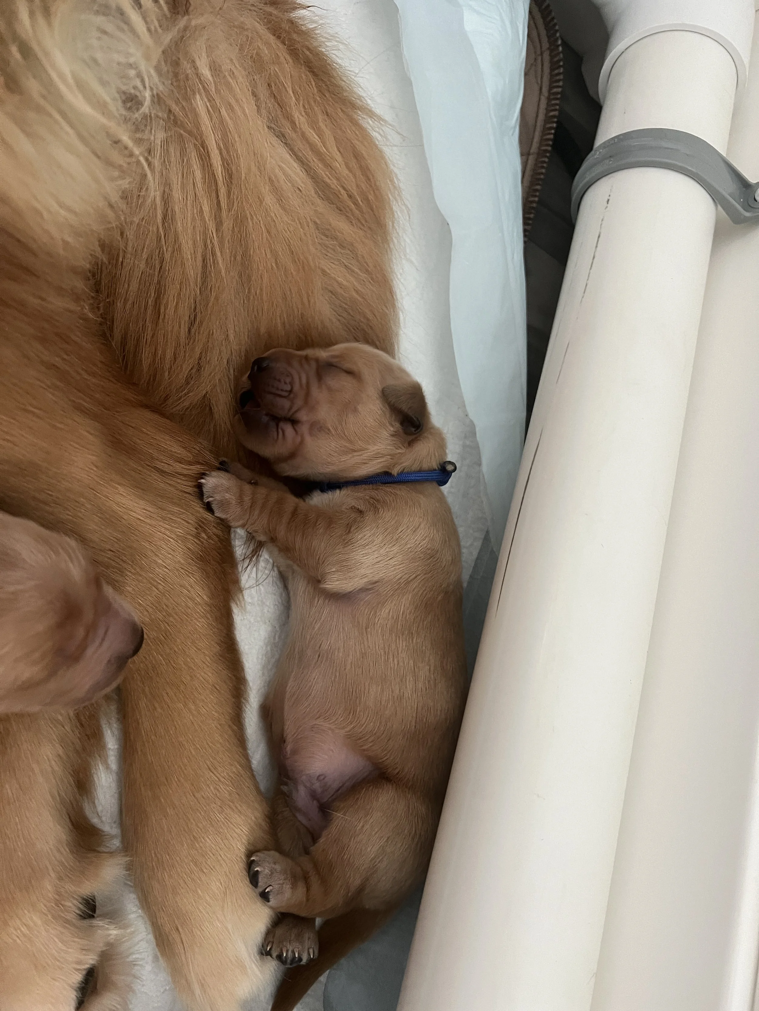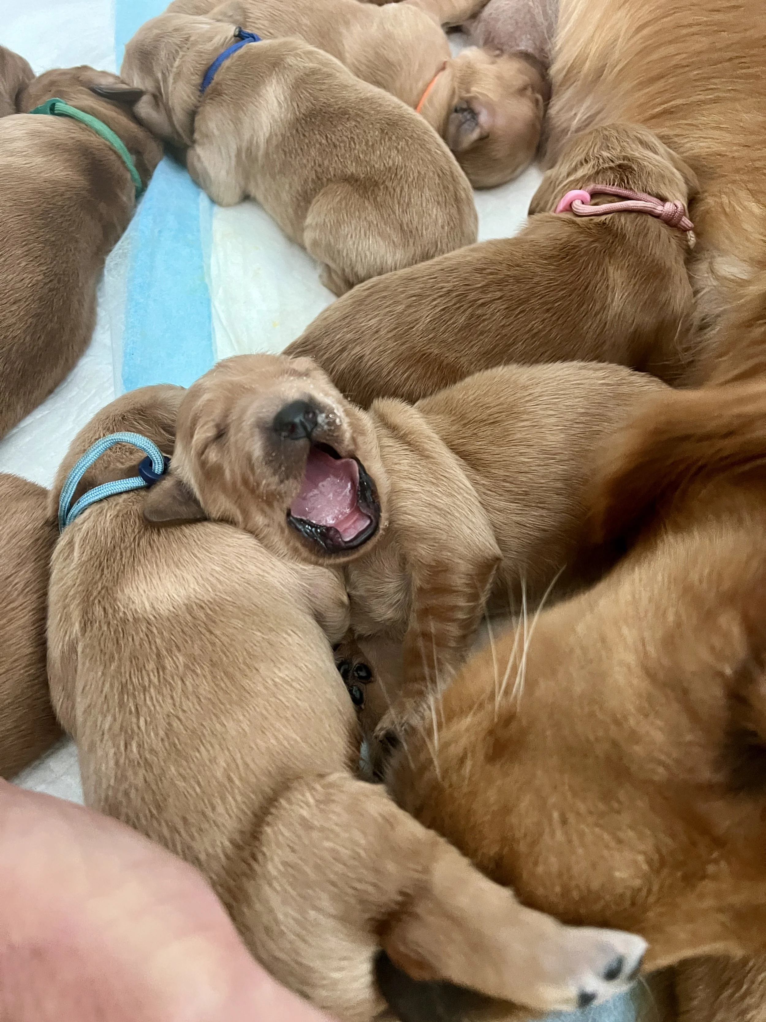 Puppies are one week old and are thriving. We are all gaining weight and really starting to move around the whelping box.