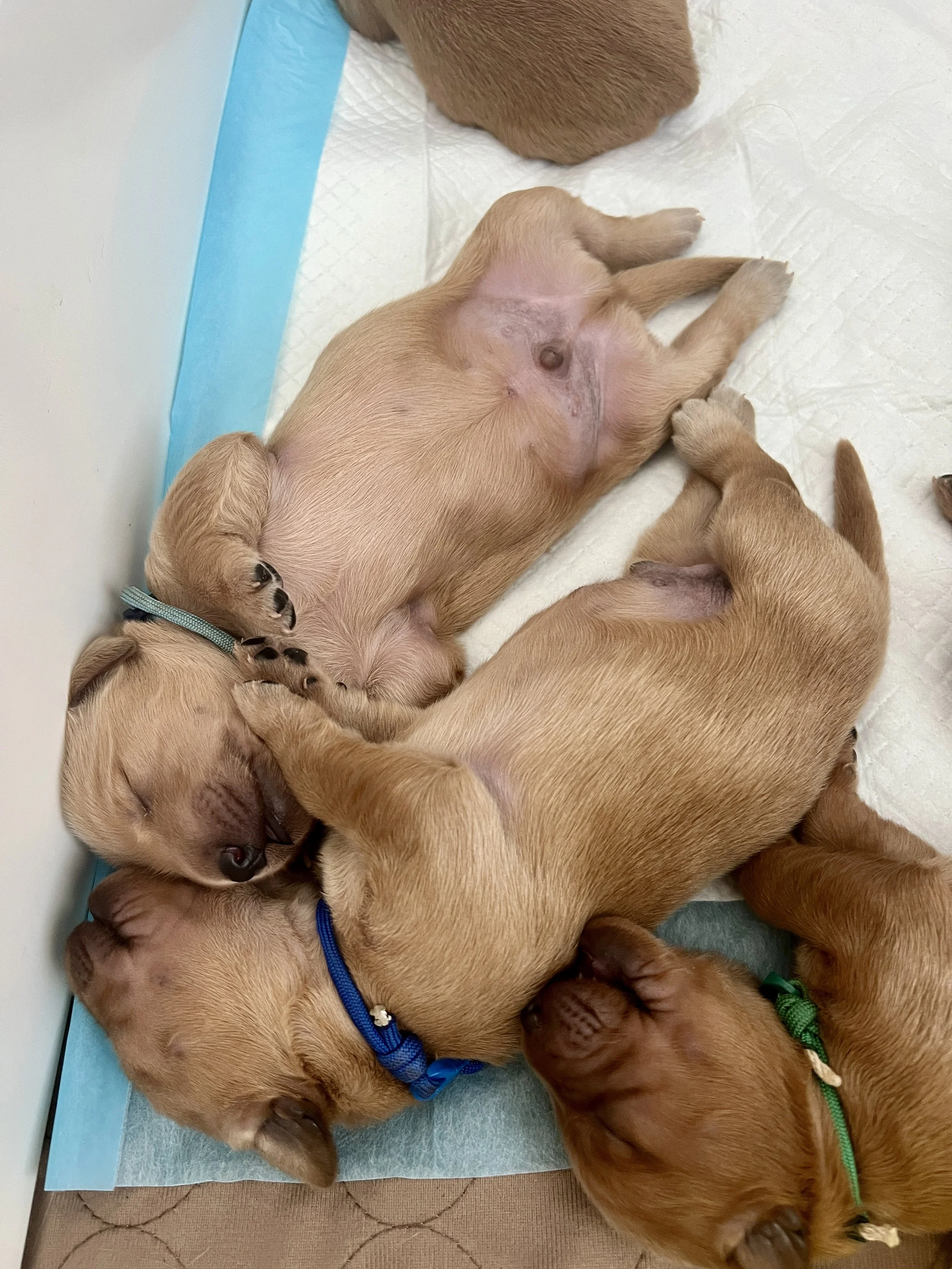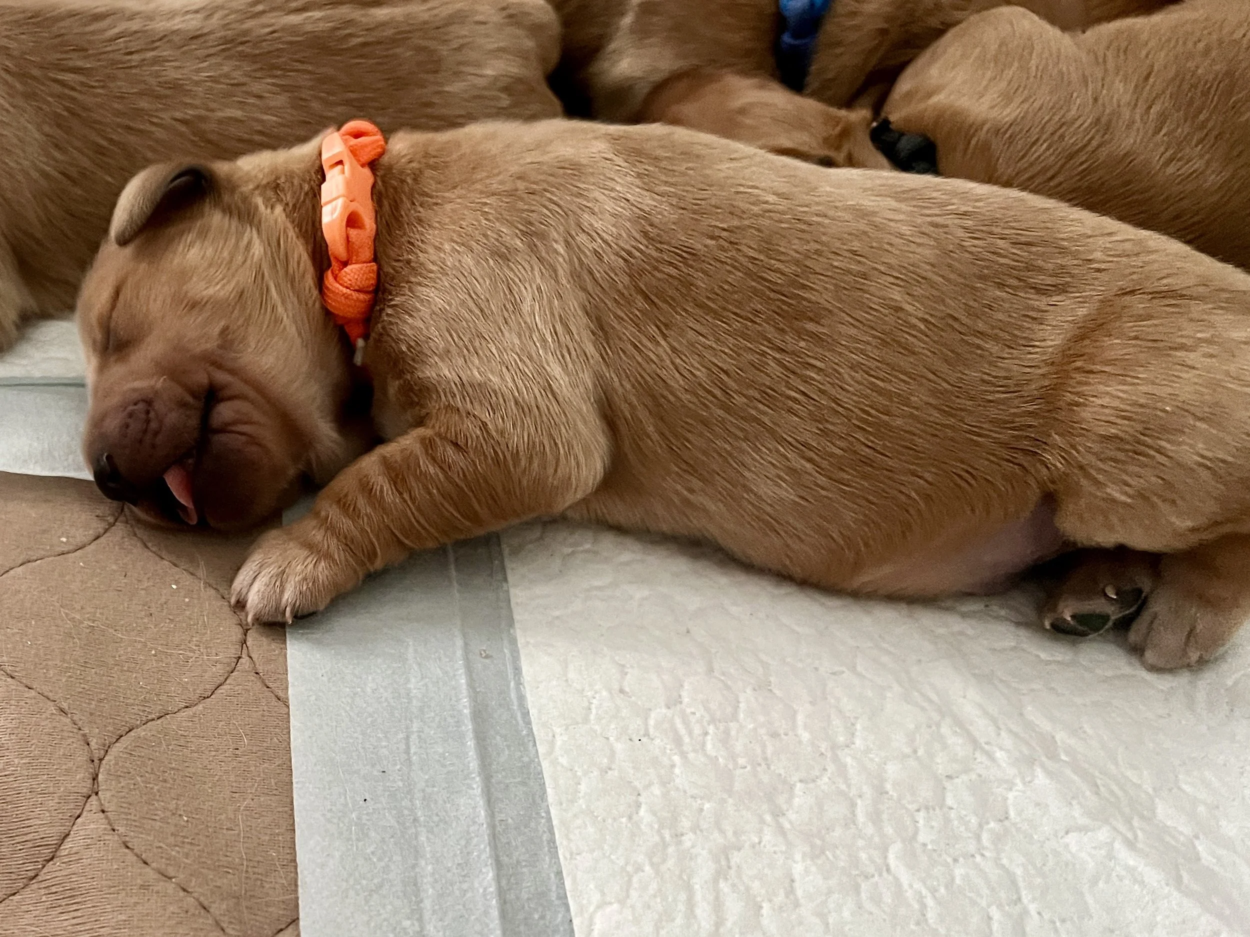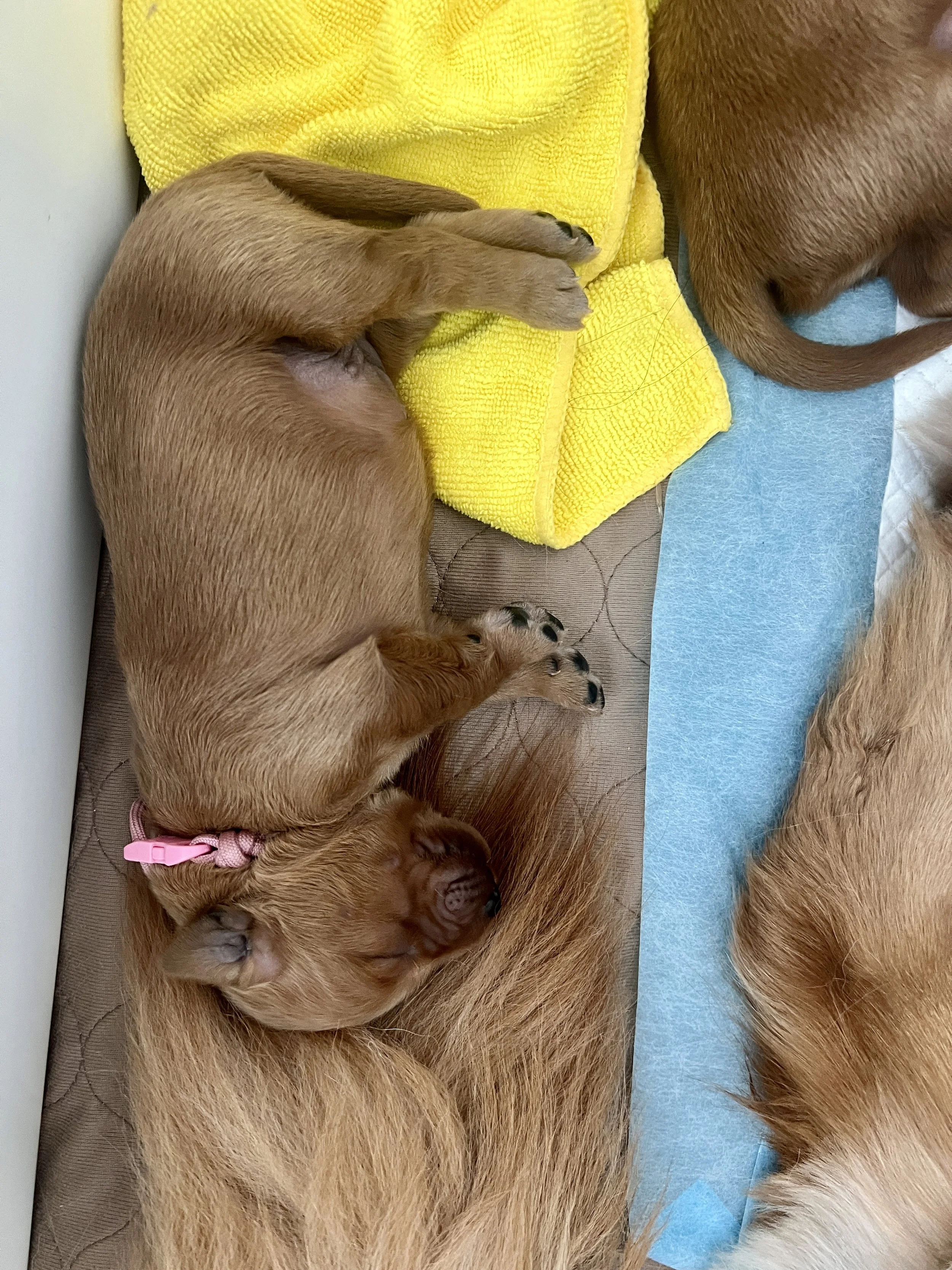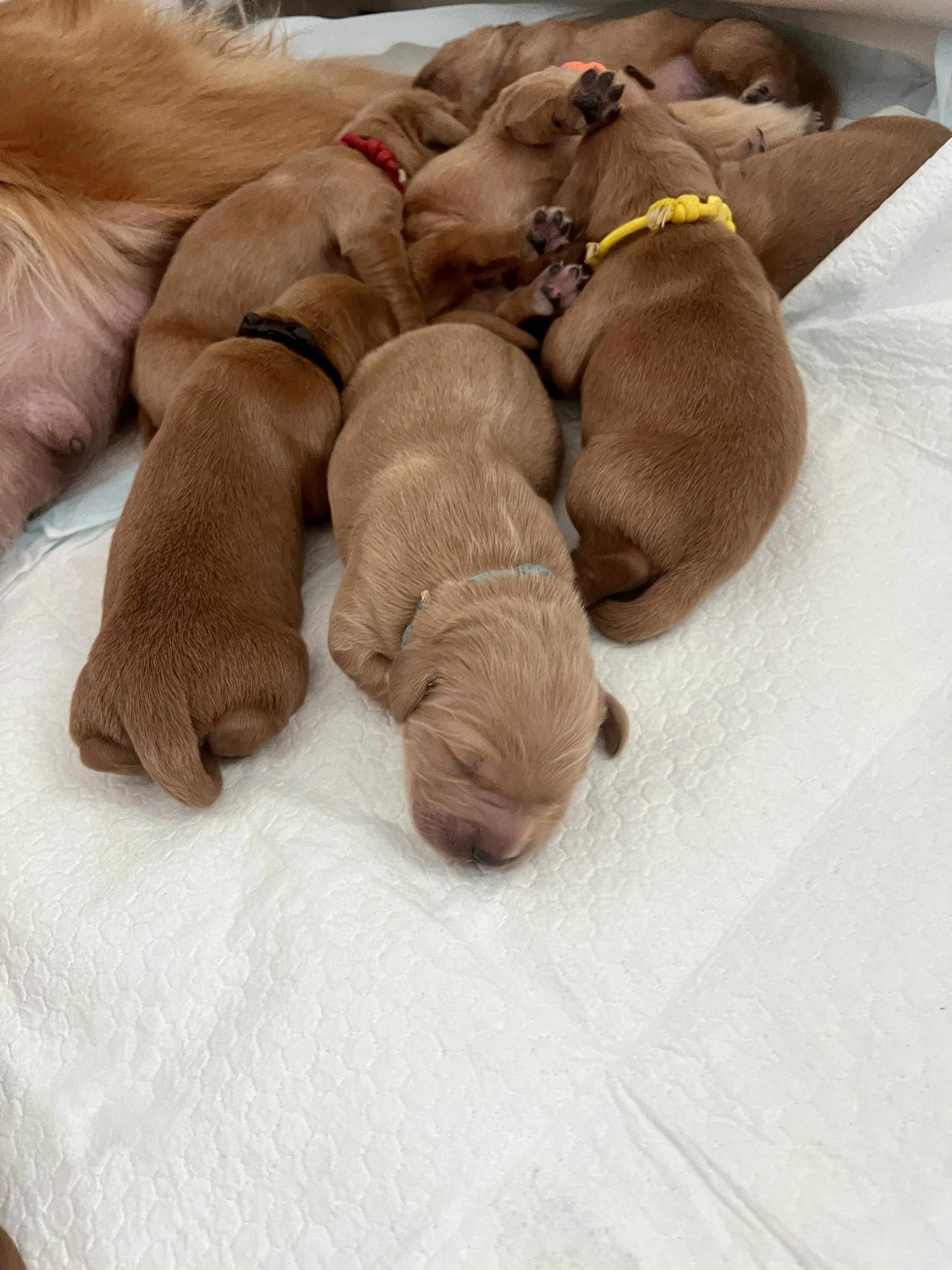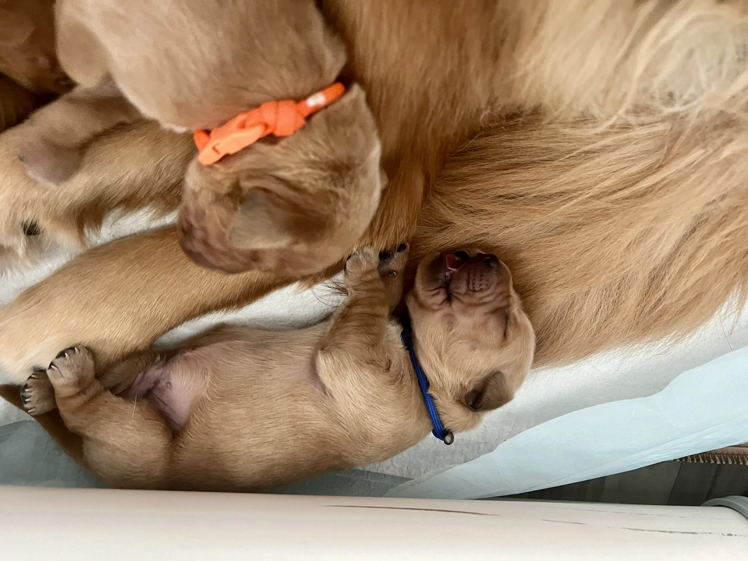 Puppies are one week old and are thriving. We are all gaining weight and really starting to move around the whelping box.