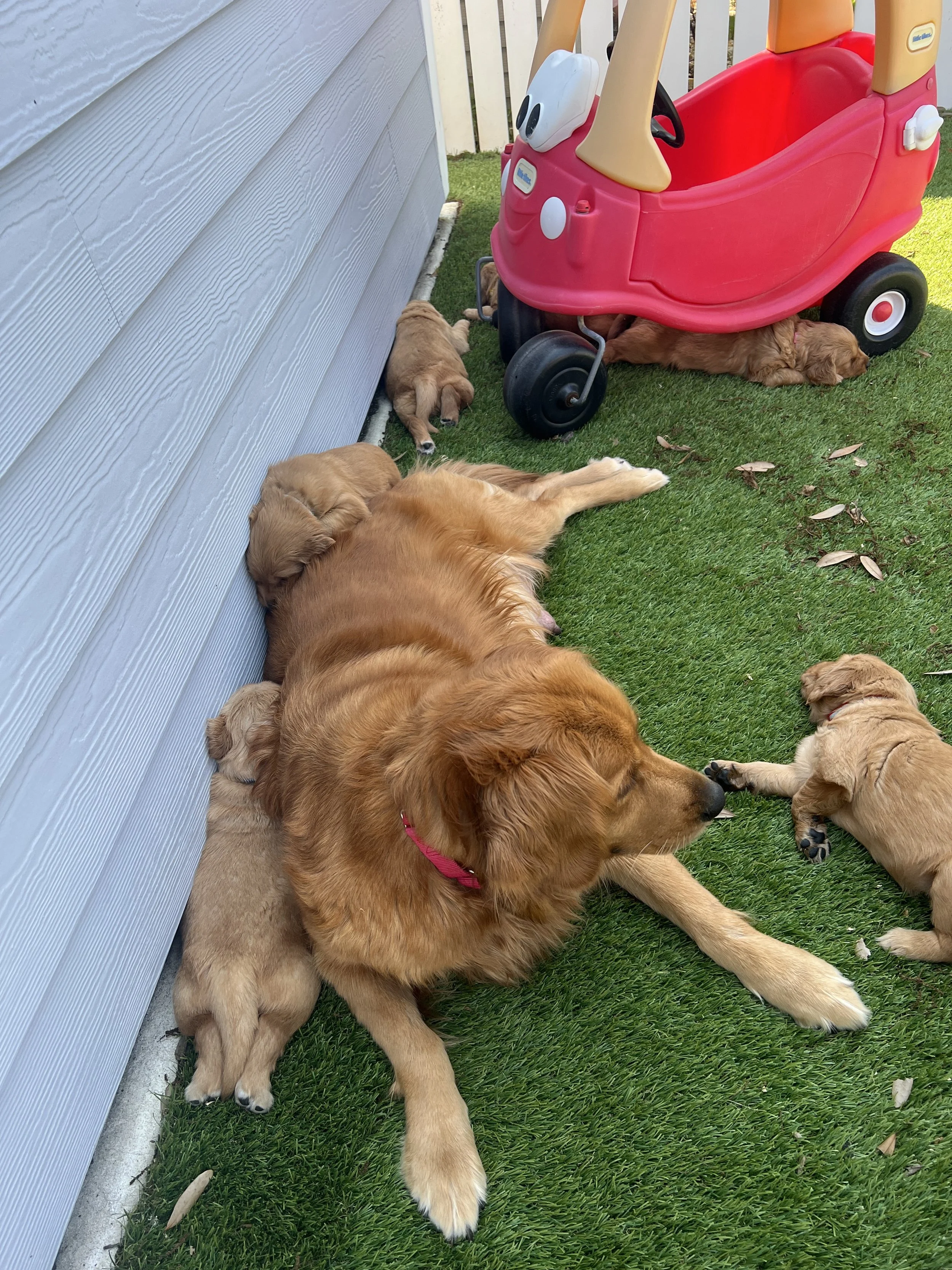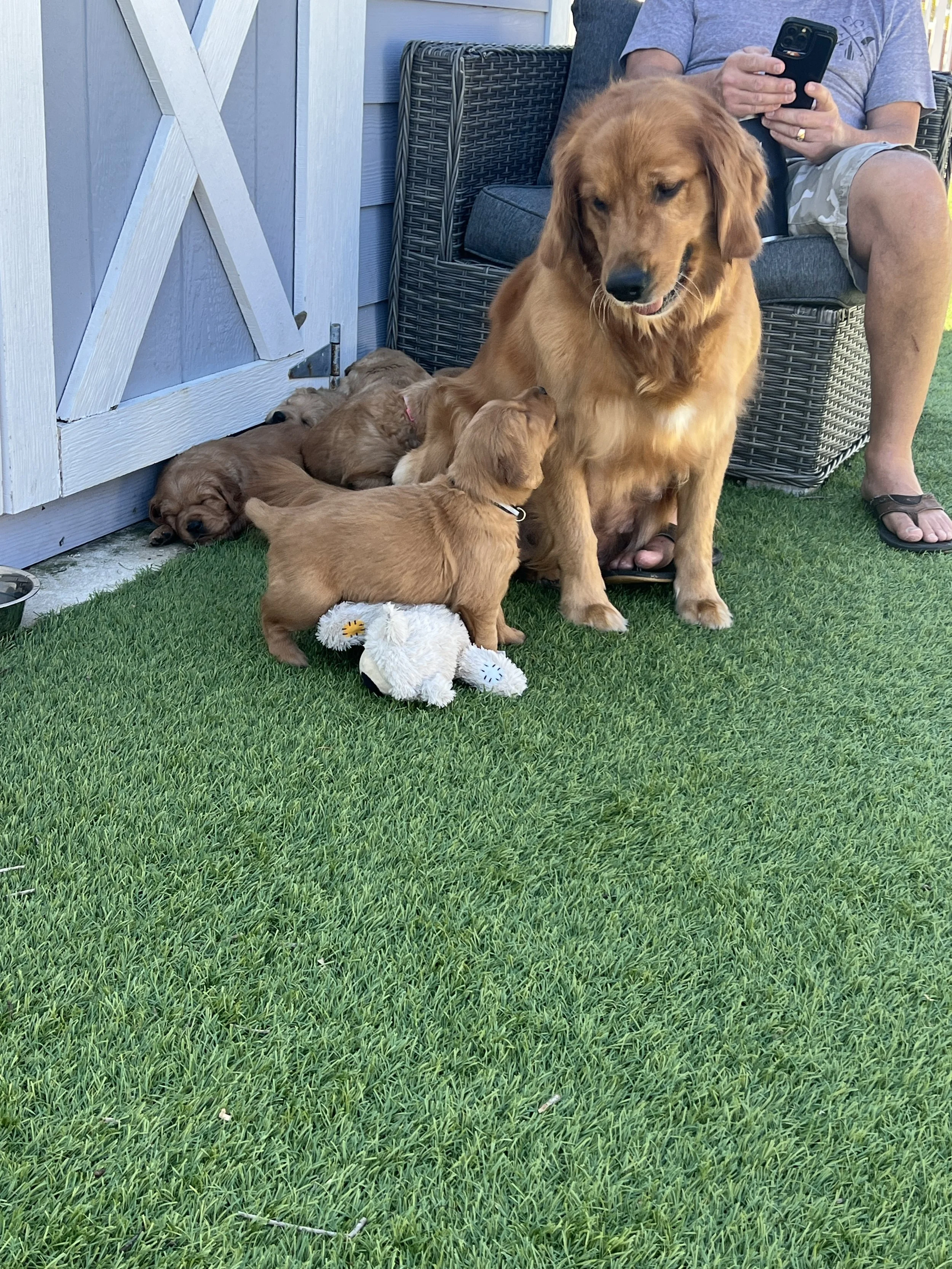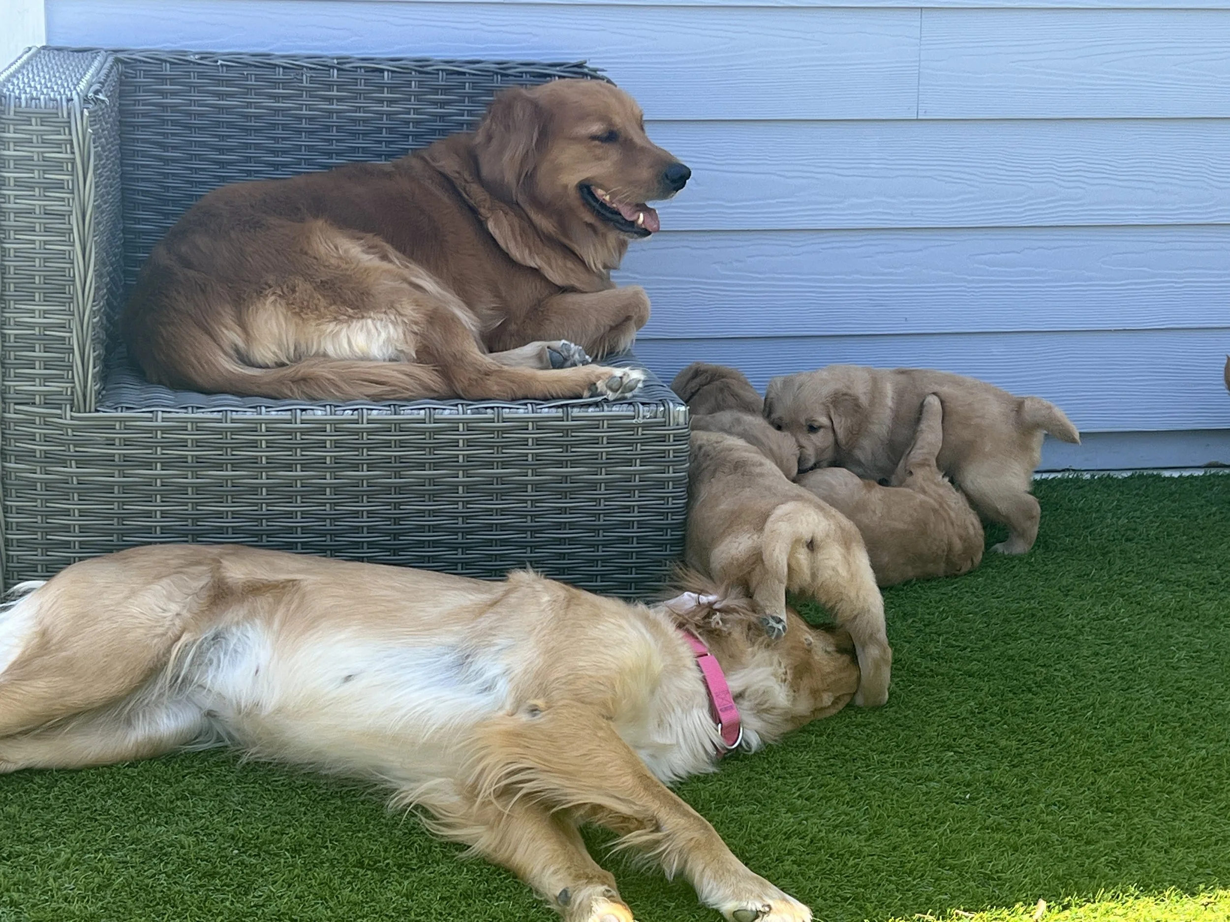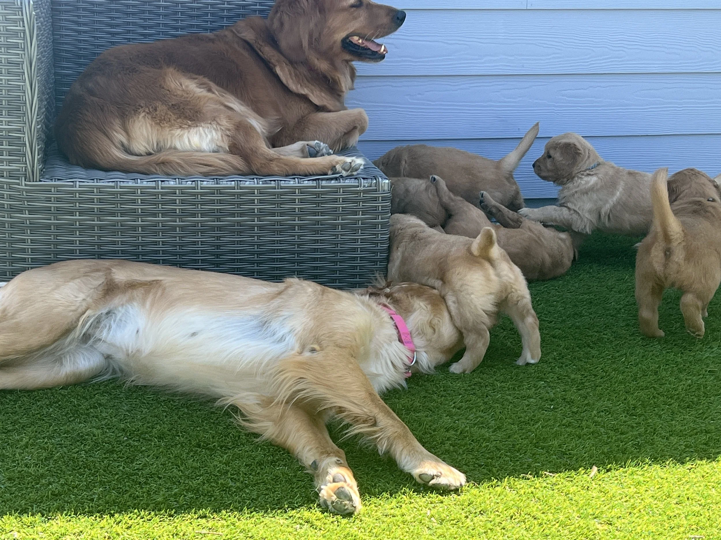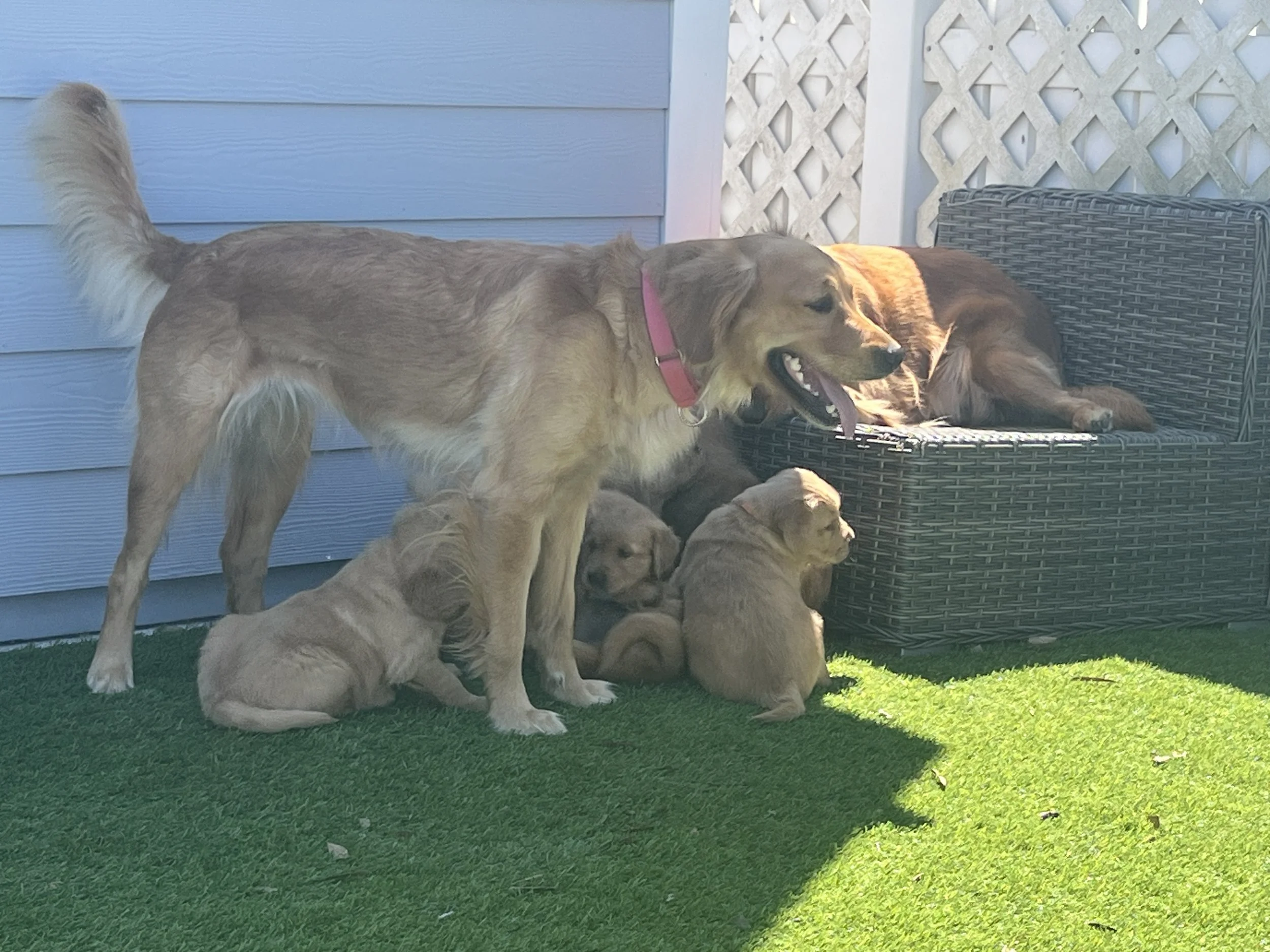We are excited to announce the delivery of our 5 girls and 3 boys. Molly did a great job, Molly and all 8 beautiful babies are doing great!!