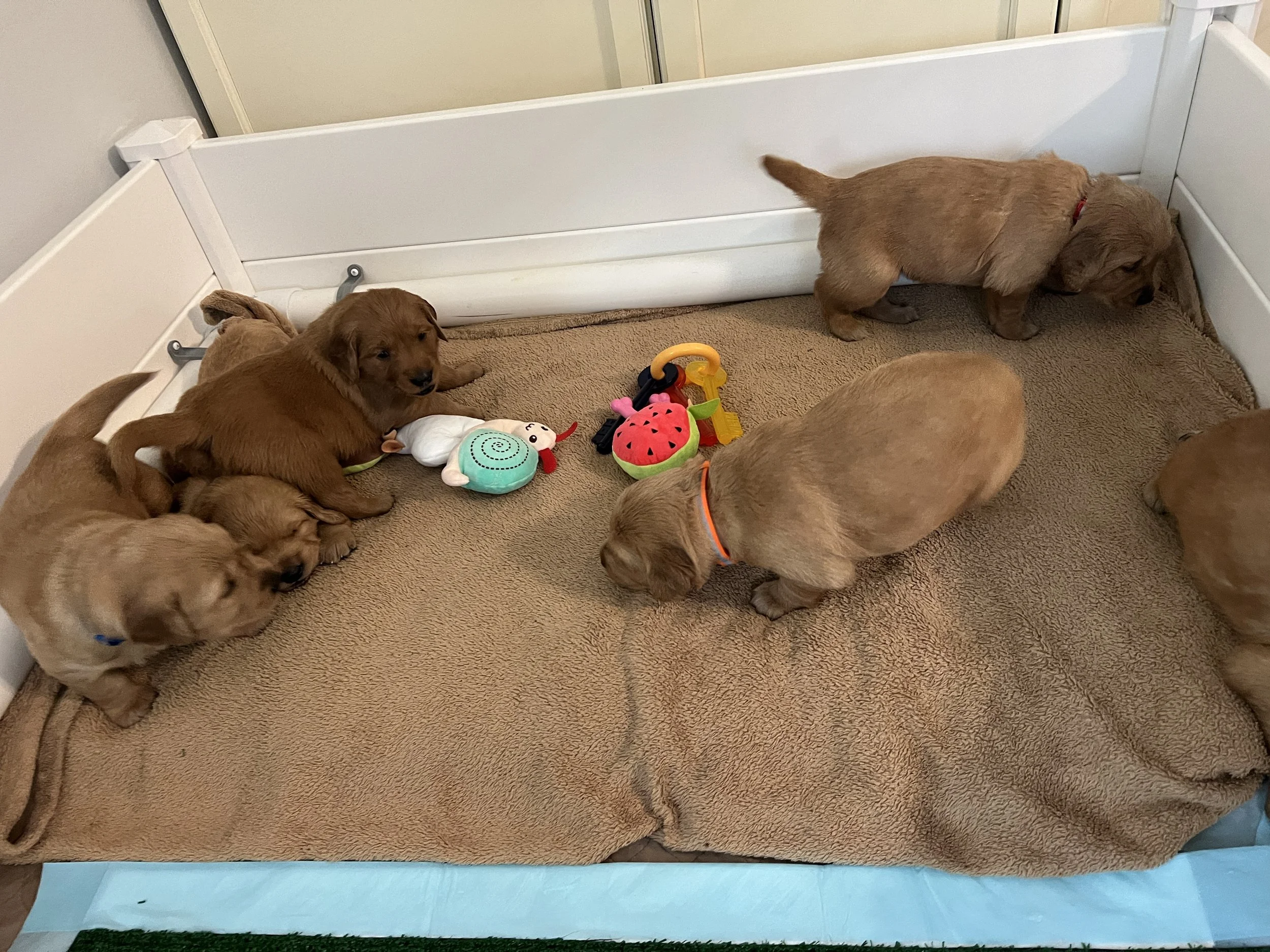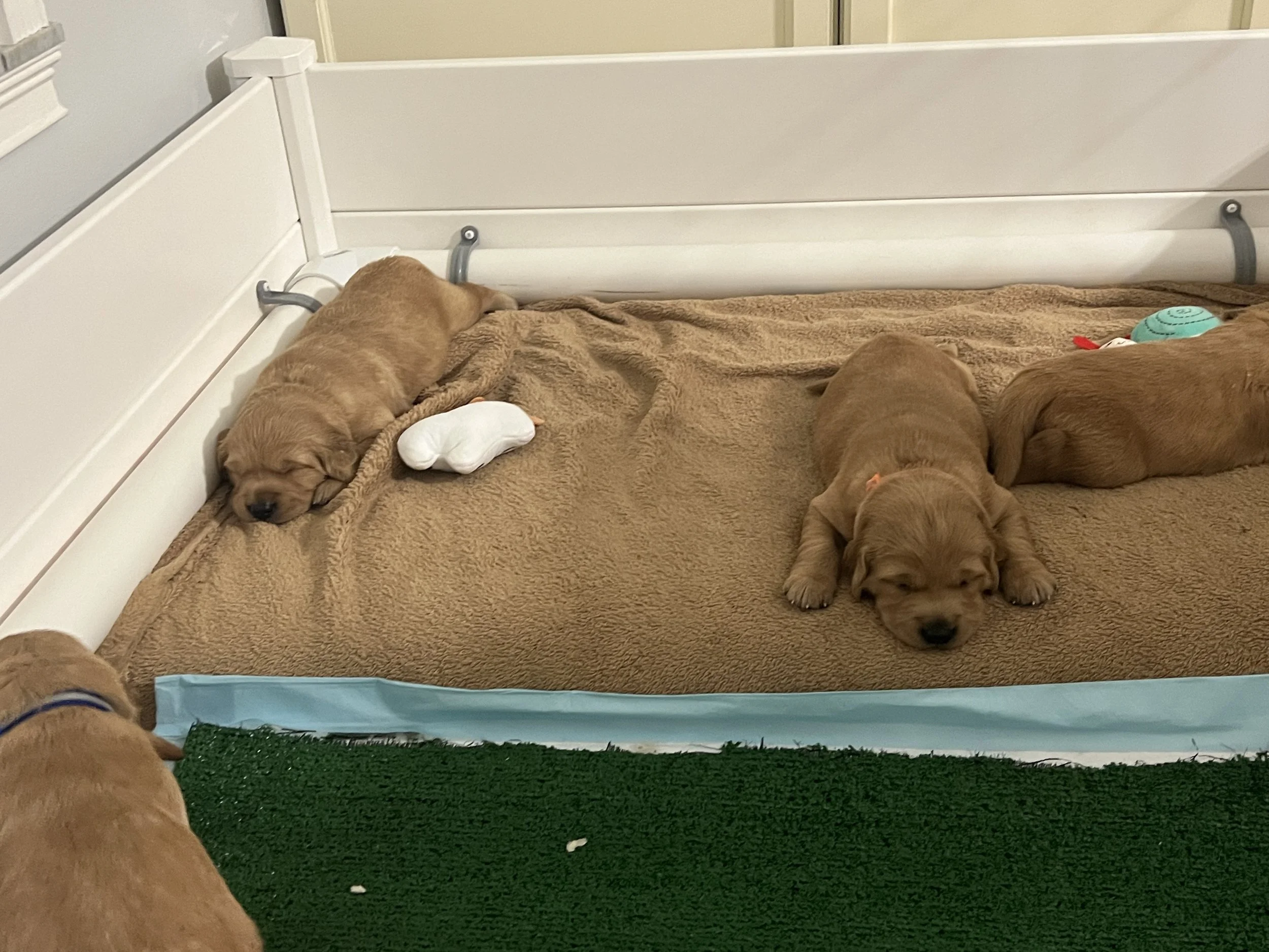 Puppies whelping box has been expanded. We now have our sleeping area, potty area, and our play area.